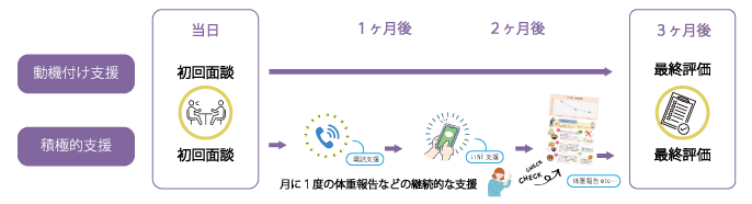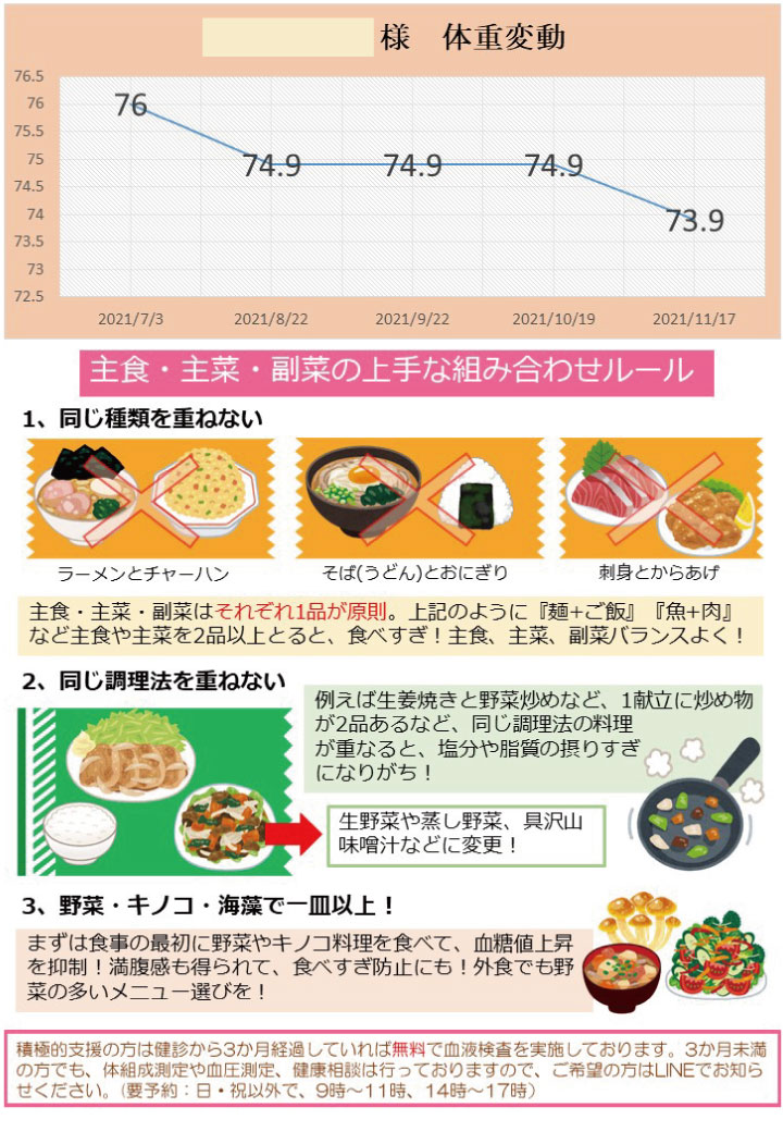 ※積極的支援の方は、ドック・健診から3か月以上経過して最終評価でご来院いただくと、血液検査や体組成測定が無料でできます。